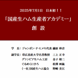 2025.7.1 日本初!「国産生ハム生産者アカデミー」を創設致しました。